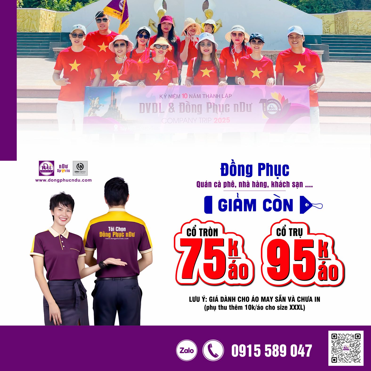 - Giảm giá tất cả các sản phẩm áo đồng phục (dòng may sẵn) của công ty: